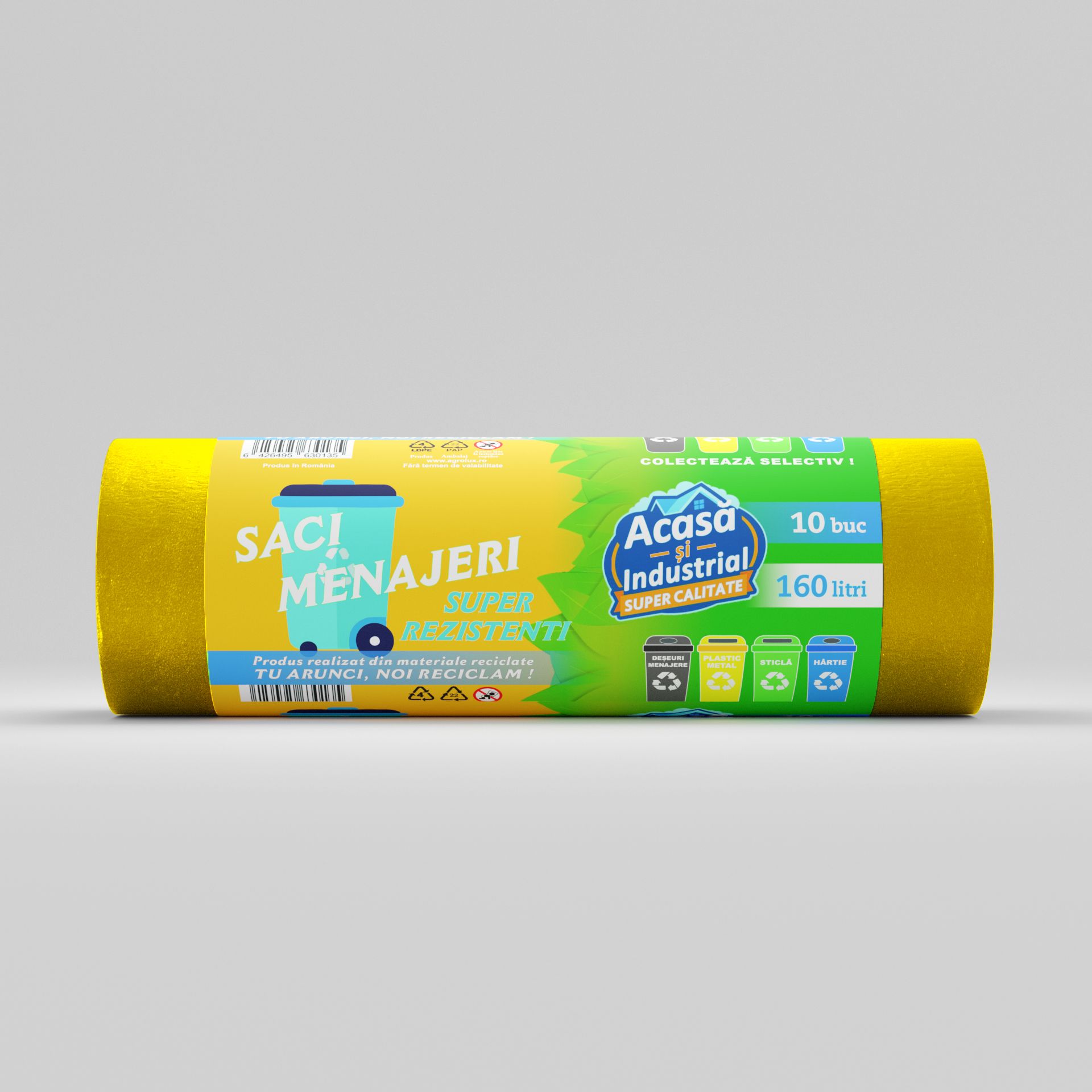 Acești saci menajeri de 160L, disponibili în pachete de 10 saci per rolă, sunt concepuți pentru a răspunde atât nevoilor casnice, cât și celor industriale, oferind o combinație excelentă de capacitate și durabilitate. Realizați din material LDPE (polietilenă de joasă densitate), acești saci sunt ideali pentru gestionarea volumelor mari de deșeuri, cu o structură robustă, dar flexibilă, ce asigură o manipulare ușoară și sigură.
