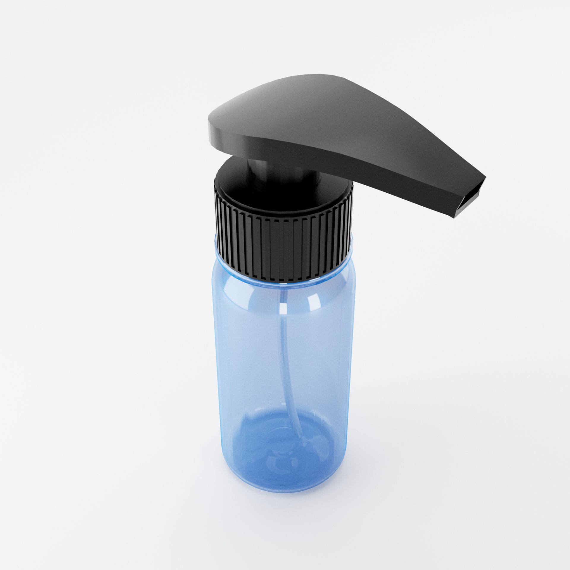 Descriere produs: Flacon PET 50ml Albastru – Filet 28mm – PCO 1810 cu pompiță neagră