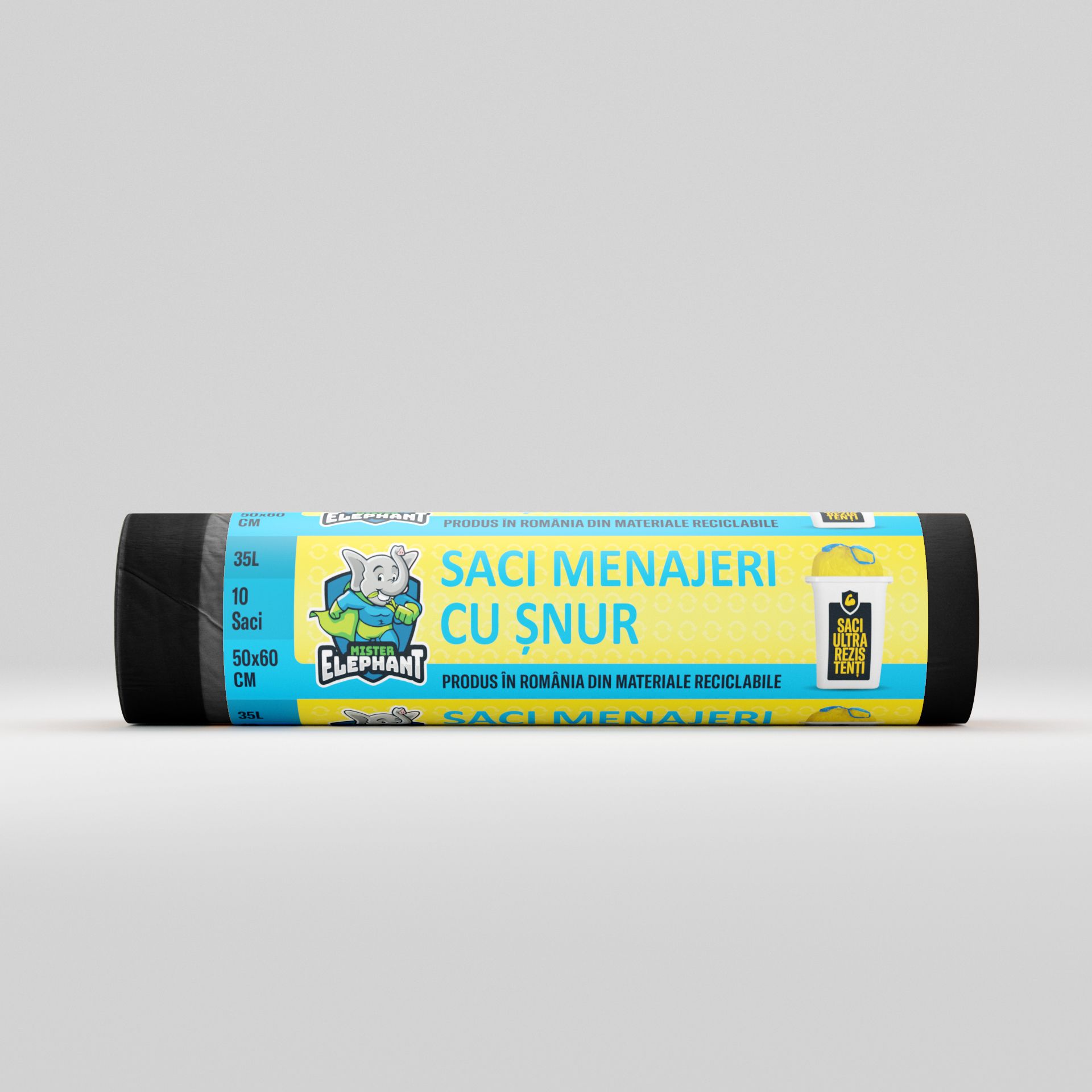 Saci menajeri cu șnur Mr. Elephant 35L – Negri-10 saci/rola